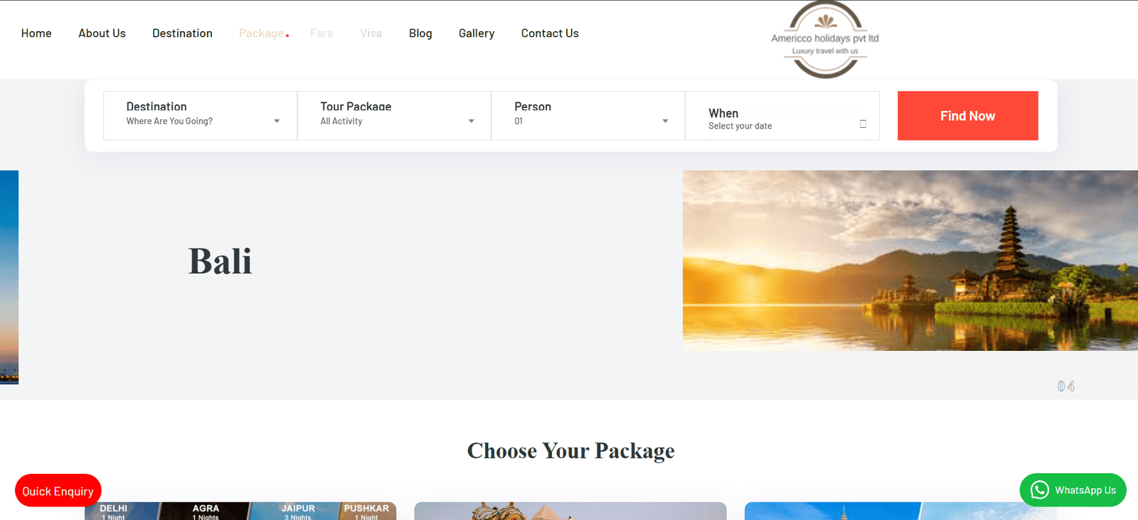 Website for Holiday Bookings